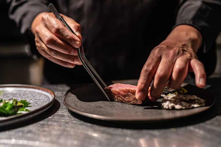 料理の提供の仕方はさまざまです。その料理を一番美味しく食べられる提供方法にこだわっています。それを追求していくと、ただ目の前に出されていくだけではない、ゲスト自身が料理に参加する、没入する食体験を結婚式の演出の一部としてお楽しみいただけます。