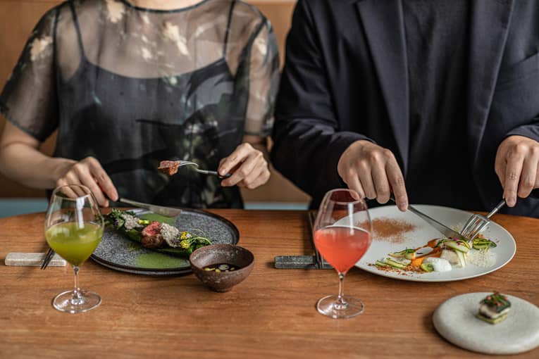 料理とドリンクの新たな掛け合わせを追求し、四季折々の食材を活かしたこだわりのフルコース。既製品は一切使わず、すべての料理を一から手仕込み。締めにご提供するスペシャリテは、ゲストの記憶に残る“絶品の一皿”。料理とドリンクのコラボレーションで、新たな食体験を提供します。